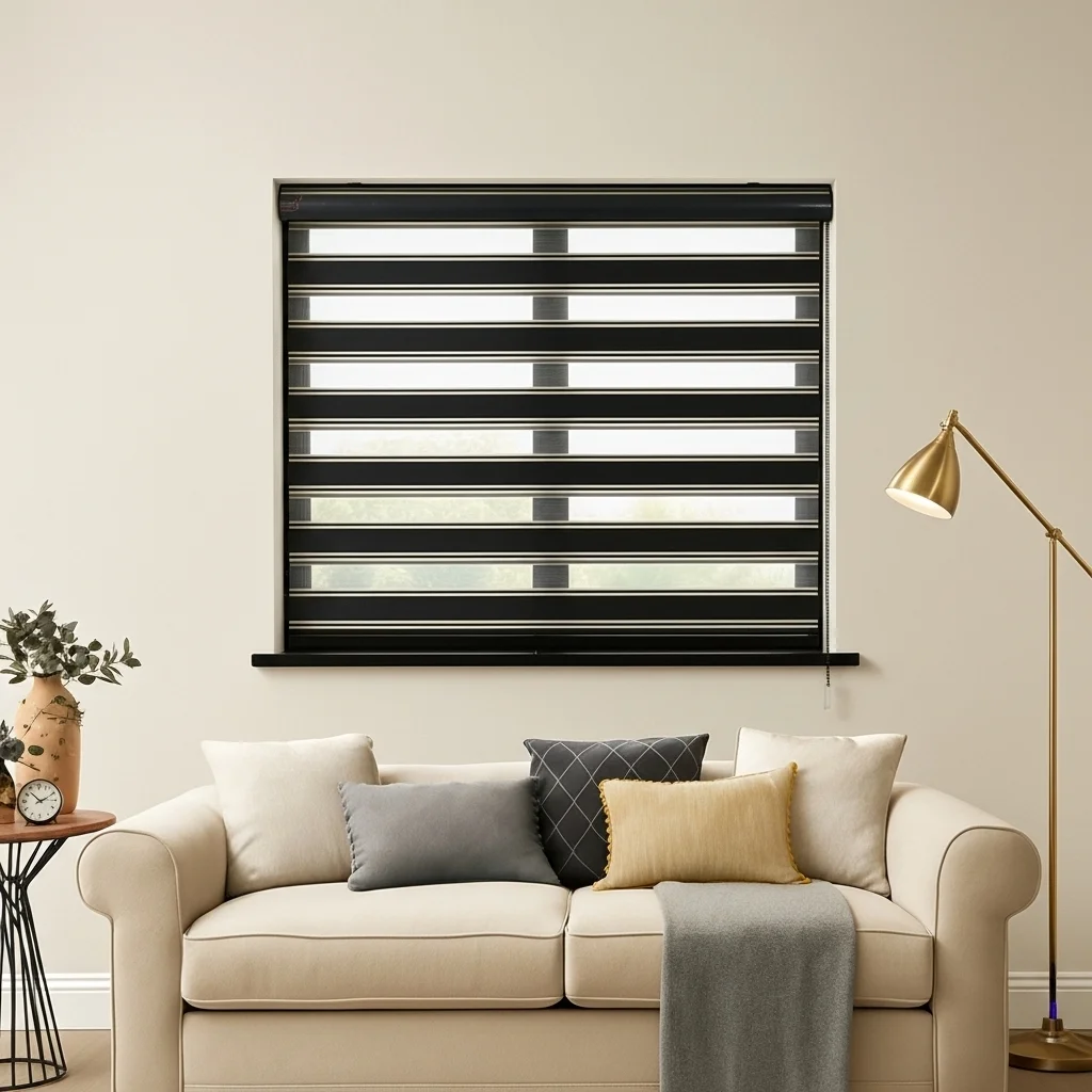 Designed with alternating sheer and opaque fabric stripes, this elegant blind lets you seamlessly switch between soft natural light and complete privacy — all while adding a sophisticated touch to your windows.