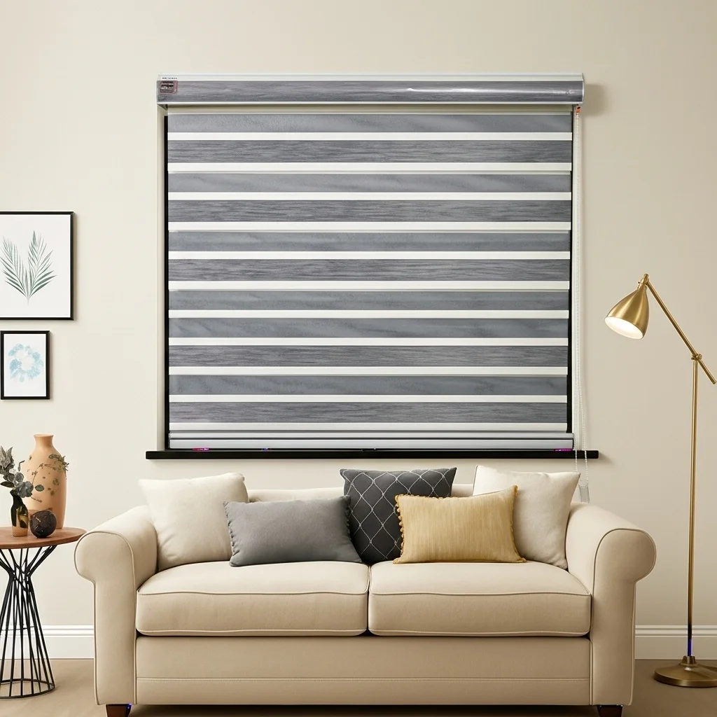 Designed with alternating sheer and opaque fabric stripes, this elegant blind lets you seamlessly switch between soft natural light and complete privacy — all while adding a sophisticated touch to your windows.