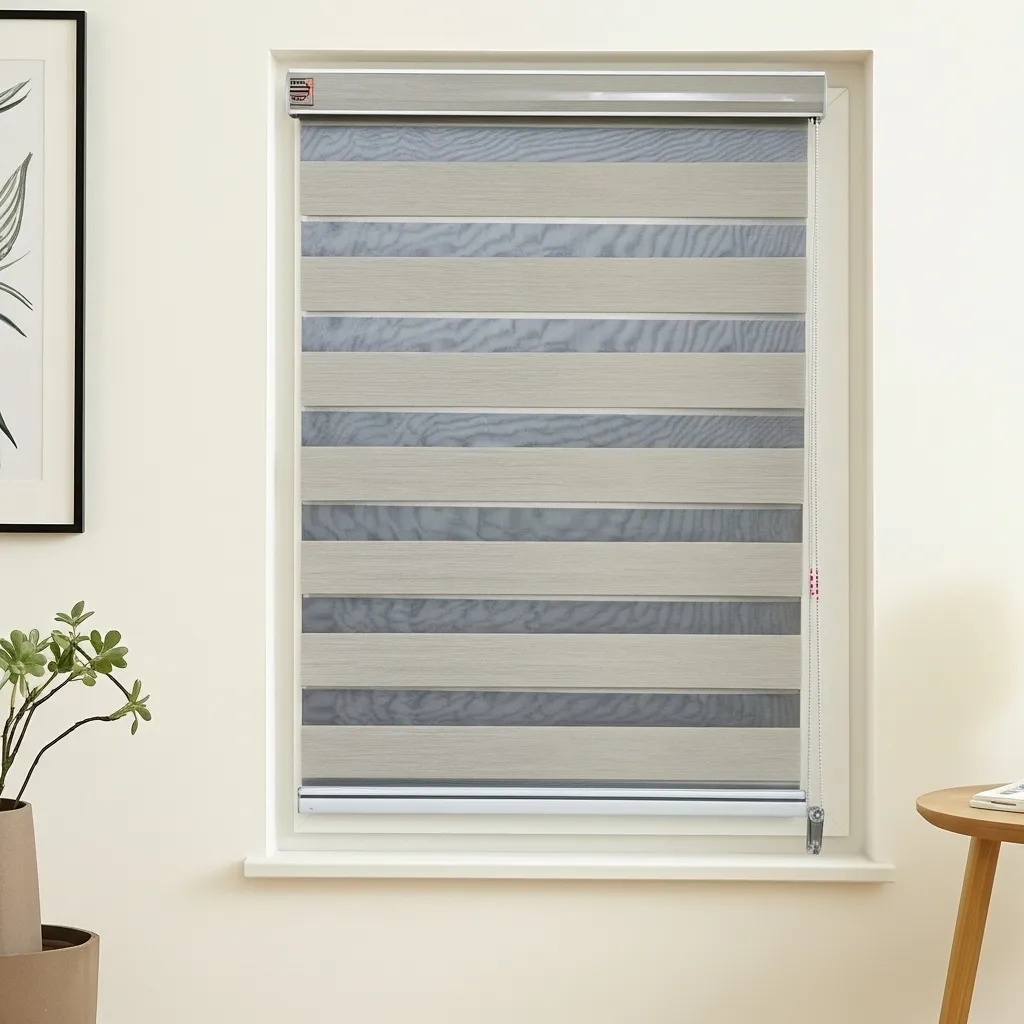 Designed with alternating sheer and opaque fabric stripes, this elegant blind lets you seamlessly switch between soft natural light and complete privacy — all while adding a sophisticated touch to your windows.